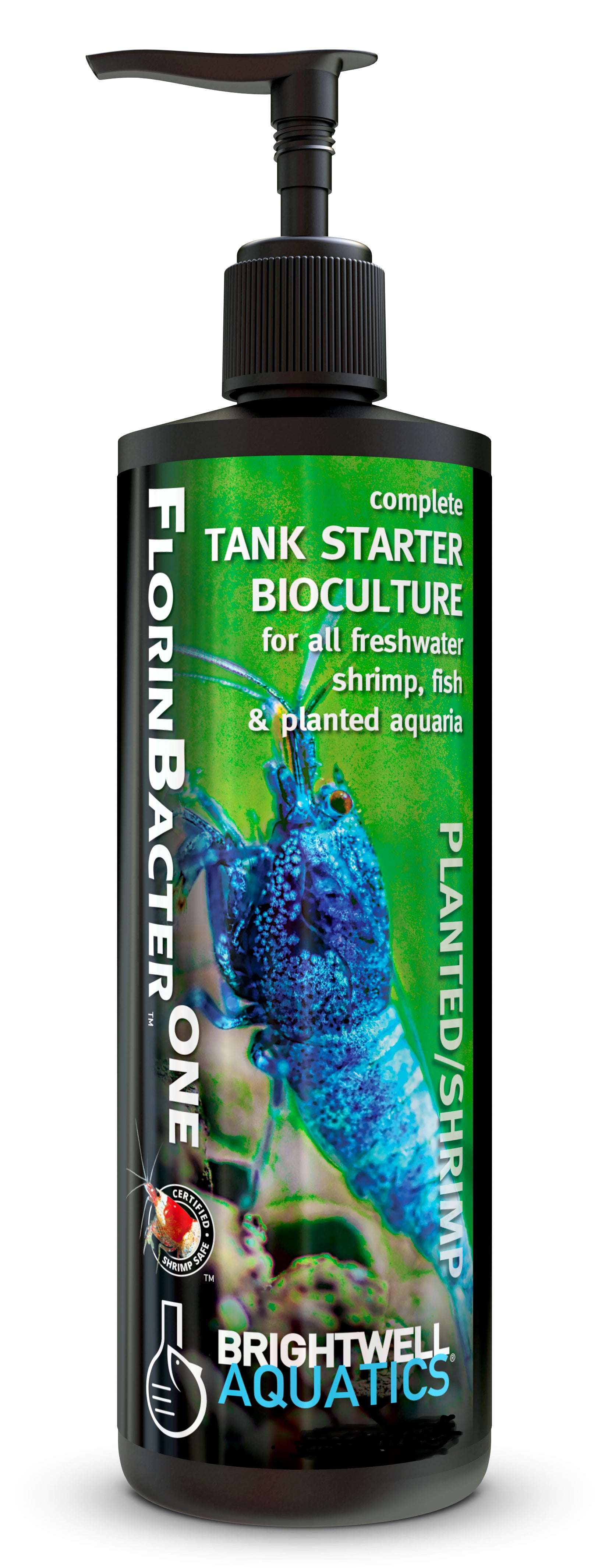 Brightwell Aquatics ShrimpFlorinBacterONE is a selective complex of extremely effective microbes and enzymes that rapidly reduces the concentrations of organic nitrogen, ammonia, nitrite, and nitrate in freshwater ecosystems, leading to greatly improved water quality; better water quality typically leads to healthier aquarium inhabitants. Use of ShrimpFlorinBacterONE does not alleviate the requirement for regular partial water changes to help maintain proper concentrations of elements that are vital to long-term health and survival of aquarium inhabitants. No product, regardless of manufacturer’s fatuous marketing claims, can do this. An aquarium is a living ecosystem and requires proper care by the aquarist; regular partial water changes constitute a large part of this care.